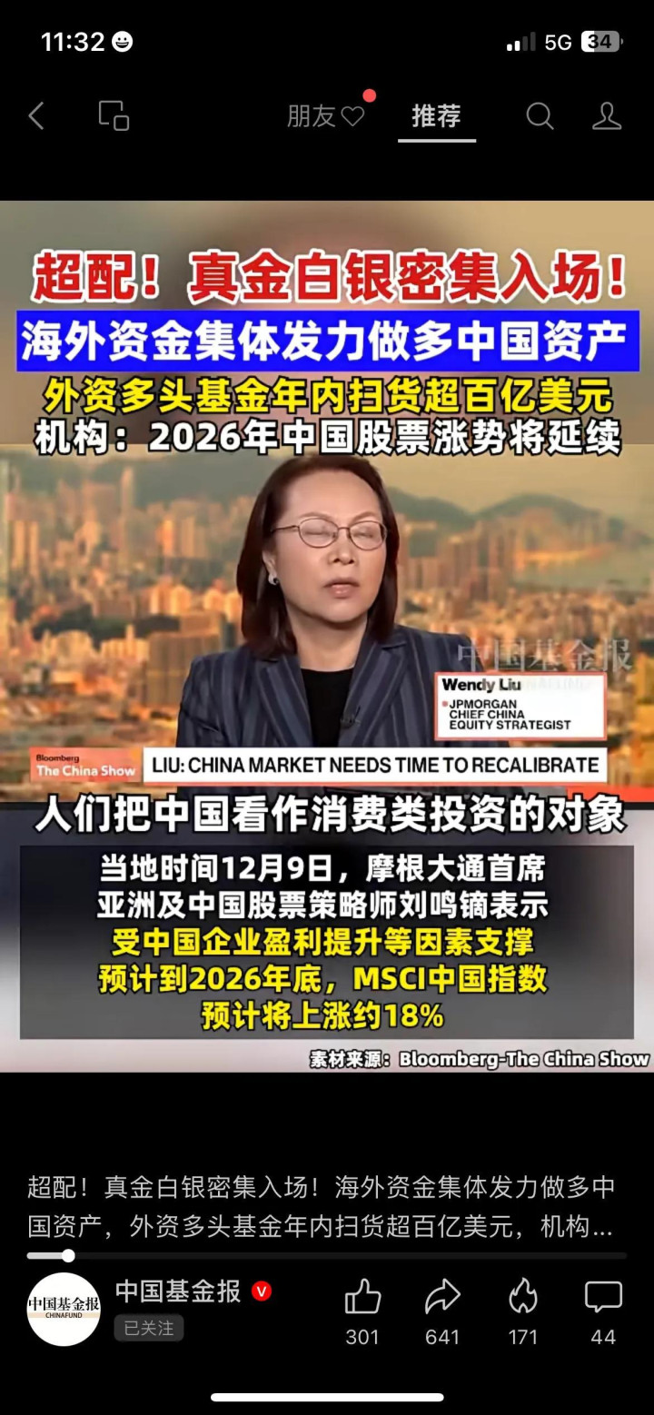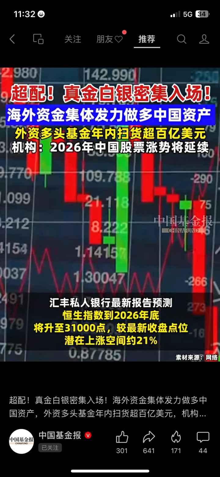 官微最新提醒,海外资金正密集加仓中国资产,截至今年11月,外资多头基金在A股、港股合计买入约100亿美元股票,机构普遍看好2026年中国股市走势。