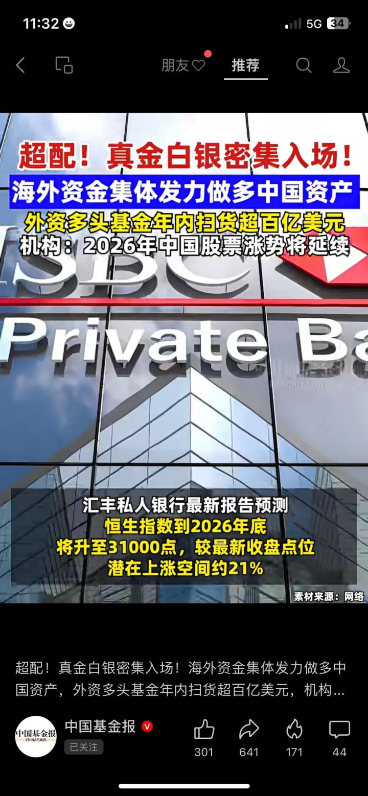 1. 恒生指数看涨:汇丰私人银行预测,2026年底恒生指数将升至31000点,潜在涨幅约21%,赚钱机会值得关注。